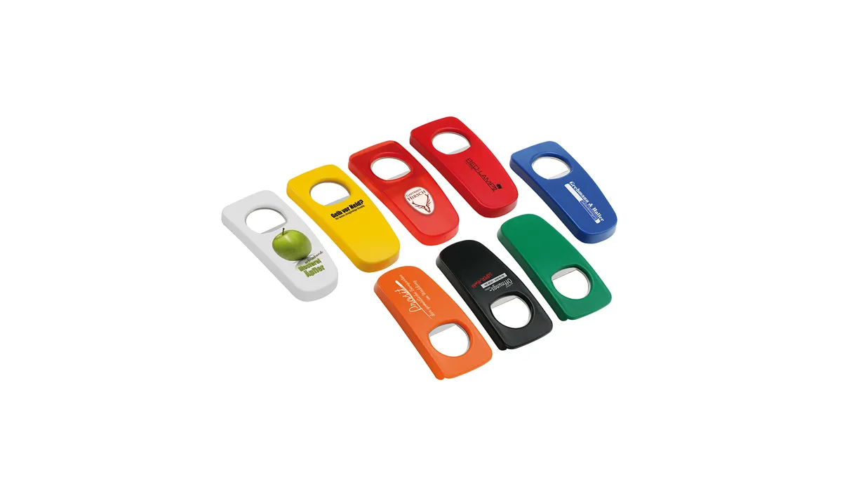 | Art.Nr.: | HE7538 | Lieferzeit: | 3-4 weeks | Gewicht: | 0,021 kg | Abmaße: | 93 x 43 x 9 mm | Farben: | weiß · rot (HKS 14*) · grün (HKS 57*) · blau (HKS 39*) · gelb (HKS 4*) · orange (HKS 10*) · schwarz · transparent: rot · blau · *Farbangaben annähernd | Material: | Polystyrol/Metall | Verpackungseinheit: | 50/500 | Werbefläche: | Tampondruck: 45 x 30 mm, Digitaldruck: 45 x 37 mm (nur auf weißen Flächen) | Druck: | Tampondruck, Digitaldruck | Druckfarben: | HKS · Pantone · CMYK | Mindestmenge: | 50 | Herkunftsland: | ![]() |