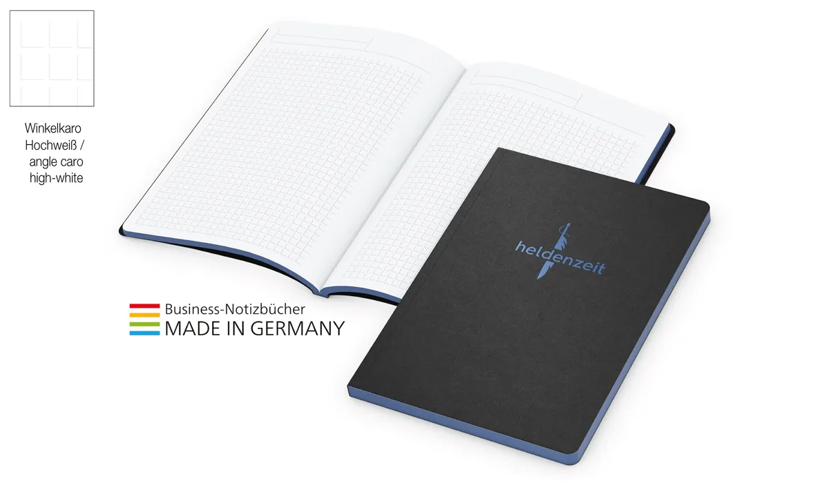 | product-no.: | GE22501 | delivery time: | 4-6 weeks | weight: | 0,095 kg | format: | sheet formats: 210 x 297 mm (A4) · 148 x 210 mm (A5) · 94 x 152 mm mm mm mm (pocket) | colour: | black | material of cover: | Cardboard cover made of natural raw materials with a natural and untreated surface. | range: | 96 pages (Pocket 128 pages) | finishing: | perfect binding brochure · book block and blanket with rounded corners | material: | high white writing paper 90 g/m² (pocket 80 g/m²) | option(s): | individually shrink-wrapping | individual packaging: | corrugated shipping bag white: no. 23 - 285 x 200 mm (A5) · no. 43 - 350 x 250 mm (A4) | packaging units: | Pocket: 150 / A5: 100 / A4: 50 | advertising area: | see downloads | print: | hot foil embossing (I) | printing ink: | embossing: gold, silver, black-shiny, blind (I) | min. quantity: | 50 | country of origin: | ![]() |