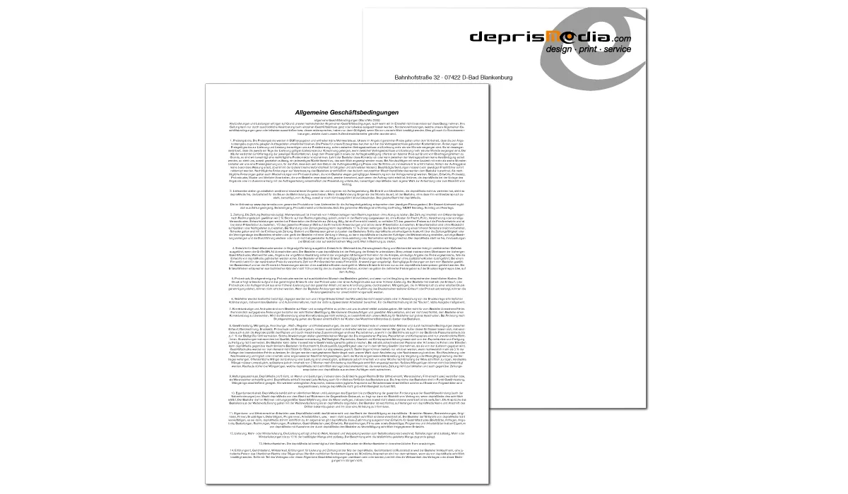 | product-no.: | GP20146 | delivery time: | 1 week | weight: | 0,200 kg | format: | DIN A4 (297 x 210 mm) | material: | 90 g / m² offset paper (suitable for printer) | advertising area: | see templates | print: | offset printing | printing ink: | cmyk, back in black | manufacturer: | deprismedia.com [Susann & Lars Ströse GbR] Bahnhofstraße 32 DE-07422 Bad Blankenburg info@deprismedia.com www.deprismedia.com Tel. +49 3 67 41-1 88 36-0 |