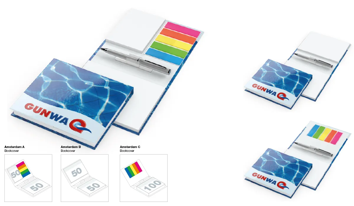 | product-no.: | GE8210120BW | delivery time: | 2-3 Wochen | weight: | 0,101 kg | format: | 105 x 90 mm closed | material of cover: | Bookcover: The bookbinding cover and its foil-laminated surface offer a lot of space for the design of the combi-sets. · Natura: Modern, durable book cover material on pure pulp base: smooth, matte, natural. | equipment: | sticky note 100 x 72 mm, 50 sheets of white adhesive paper · sticky note 50 x 72 mm, 50 sheets of white adhesive paper · film marker set (5 x 20 film markers 12 x 44 mm made of transparent, colored film) · mini ballpoint pen metal | material: | cover: bookcover gloss-individual | option(s): | cover bookcover matt-individual or natura brown or brown individual · paper marker set (5 x 20 paper markers 12 x 42 mm made of colored paper (at no extra charge) · change of print motif (on request) · single welding in | packaging units: | 96 | advertising area: | see downloads | print: | 4C-quality on the cover included · sticky notes white blank | printing ink: | cmyk | min. quantity: | 250 | country of origin: | ![]() |