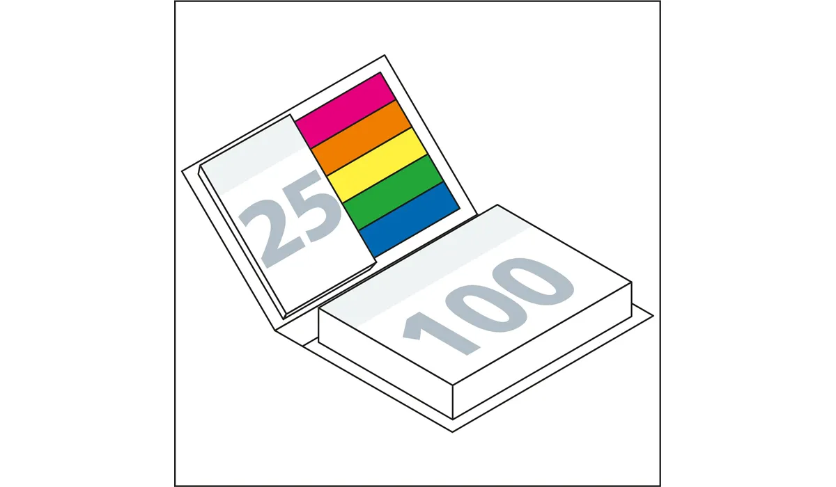 | product-no.: | GE949554BI | delivery time: | 2-3 Wochen | weight: | 0,101 kg | format: | 105 x 78 mm closed · 105 x 172 mm open | material of cover: | Bookcover: The bookbinding cover and its foil-laminated surface offer a lot of space for the design of the combi-sets. · Natura: Modern, durable book cover material on pure pulp base: smooth, matte, natural. | equipment: | sticky note 100 x 72 mm, 100 sheets of adhesive paper white · sticky note 50 x 72 mm, 25 sheets of adhesive paper white · film marker set (5 x 20 film marker 12 x 44 mm made of transparent colored film) | material: | cover: bookcover or natura | option(s): | envelope book cover matt-individual or natura white/brown-individual · change of print motif (on request) · individually shrink-wrapped | packaging units: | 126 | advertising area: | see downloads | print: | 4C-quality on the cover including | printing ink: | cmyk | min. quantity: | 100 | country of origin: | ![]() |