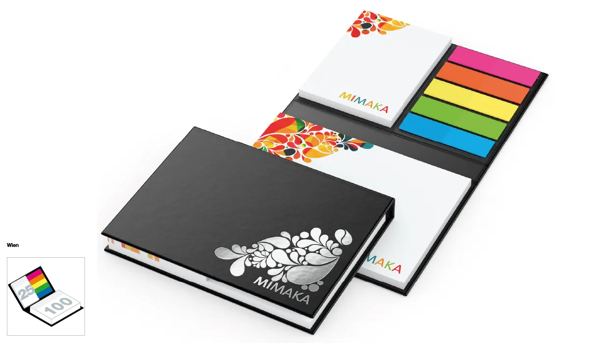 | product-no.: | GE949609 | delivery time: | 2-3 Wochen | weight: | 0,101 kg | format: | 105 x 78 mm closed · 105 x 172 mm open | material of cover: | Bookcover: The bookbinding cover and its foil-laminated surface offer a lot of space for the design of the combi-sets. · Natura: Modern, durable book cover material on pure pulp base: smooth, matte, natural. | equipment: | mirror in black · sticky note 100 x 72 mm, 100 sheets of adhesive paper white · sticky note 50 x 72 mm, 25 sheets of adhesive paper white · film marker set (5 x 20 film marker 12 x 45 mm made of transparent colored film) · standard color cut: edges of both sticky notes in yellow, orange, green, medium blue, red or black (only version with standard color cut) | material: | cover: bookcover matt-black | option(s): | cover bookcover gloss-black · paper marker set (5 x 20 paper markers 12 x 42 mm made of colored paper (at no extra charge) · change of print motif (on request) · single welding in | packaging units: | 126 | advertising area: | see downloads | print: | embossing on the cover included · sticky notes, white, unprinted | printing ink: | embossing: gold · black · silver · blind | min. quantity: | 100 | country of origin: | ![]() |