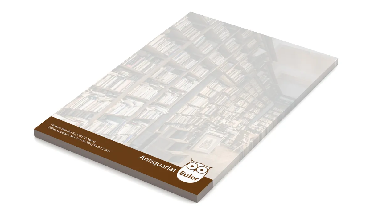 | product-no.: | GE08200AD51250 | delivery time: | 2-3 Wochen | weight: | 0,065 kg | format: | 100 x 147 mm | range: | 50 sheets | equipment: | 2 traces of adhesive | material: | white adhesive paper | option(s): | individual manufacturer identification on the bottom sheet · individually welded in · change of print motif (on request) | packaging units: | 160 | advertising area: | see downloads | print: | 4C-quality inclusive | printing ink: | cmyk | min. quantity: | 250 | country of origin: | ![]() |