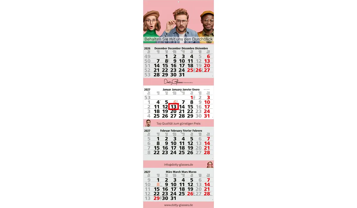 4-Monatskalender 2027 Quadro 4 Post