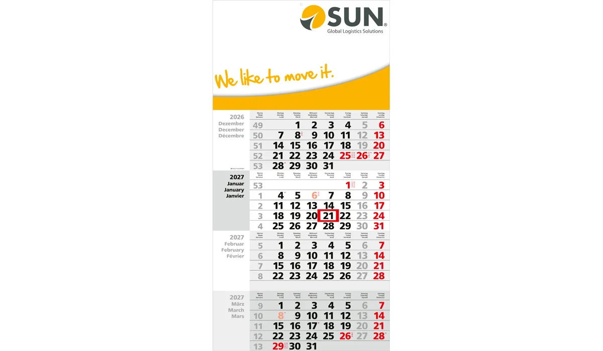 | Bestellung bis spätestens 19.06.2026 (Druckfreigabe muss bis spätestens 25.06.2026 vorliegen). Lieferung zu Ihrem Wunschtermin, wenn Sie diesen in Ihrer Bestellung angeben, spätestens jedoch zum 01.09.2026. Bestellungen ohne Wunschtermin liefern wir direkt nach Fertigstellung, jedoch nicht vor dem 01.07.2026. | Art.Nr.: | GE320002 | Lieferzeit: | 2-5 Wochen | Gewicht: | 0,270 kg | Format: | 330 x 655 mm gesamt · 330 x 460 mm Kalendarium | Kalendarium: | Deutsch 3sprachig D/GB/F hellgrau | Werbeeindruck: |