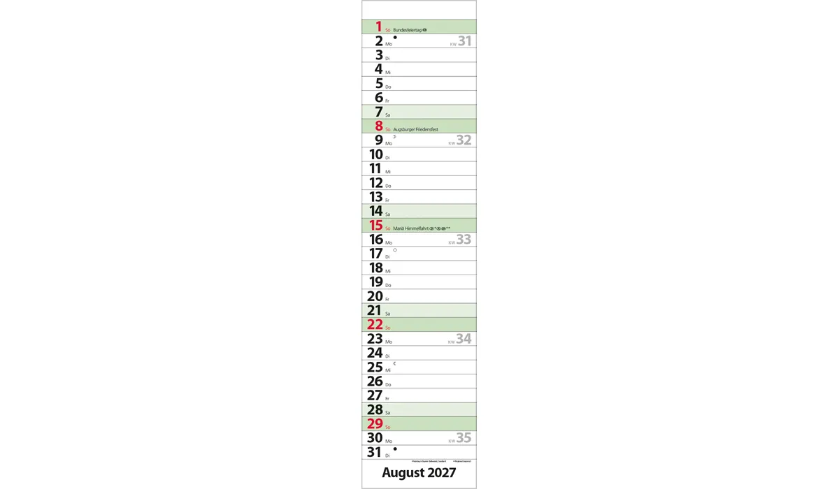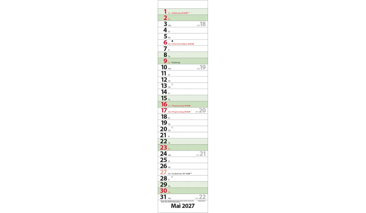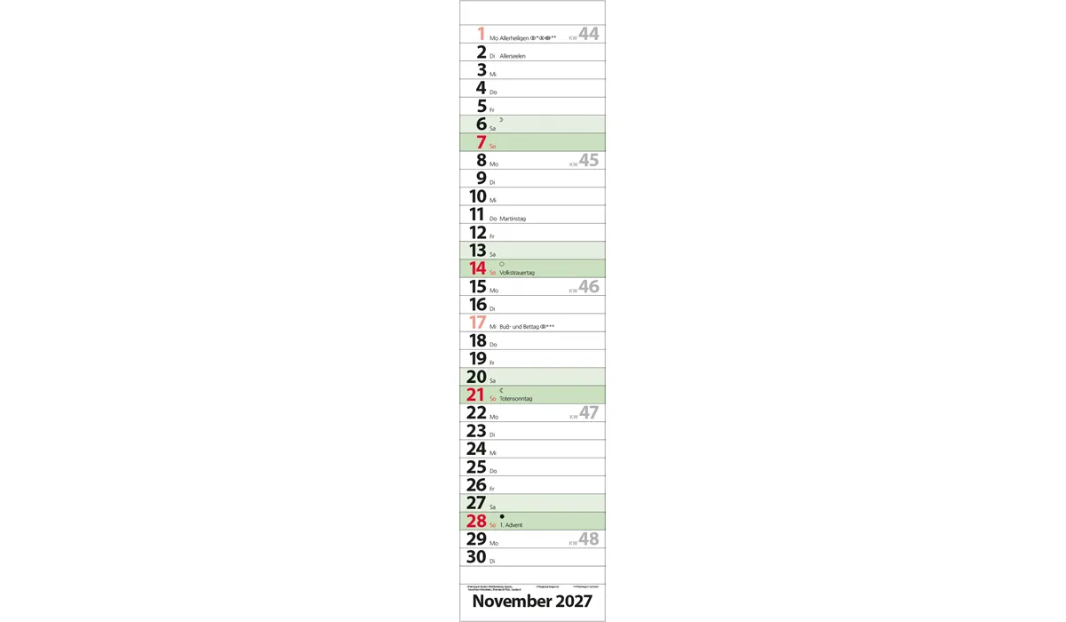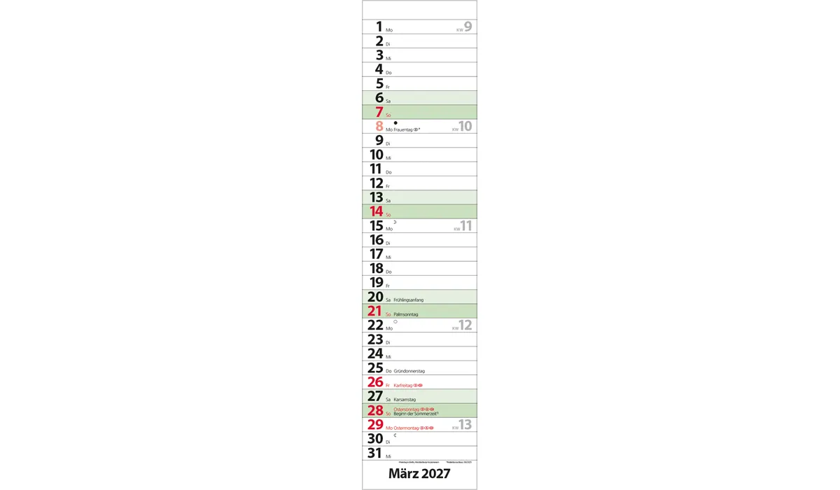 | Art.Nr.: | KO2259027 | Lieferzeit: | 4-6 Wochen | Gewicht: | 0,125 kg | Format: | 11,8 x 50 cm | Kalendarium: | deutsch | Werbeeindruck: |