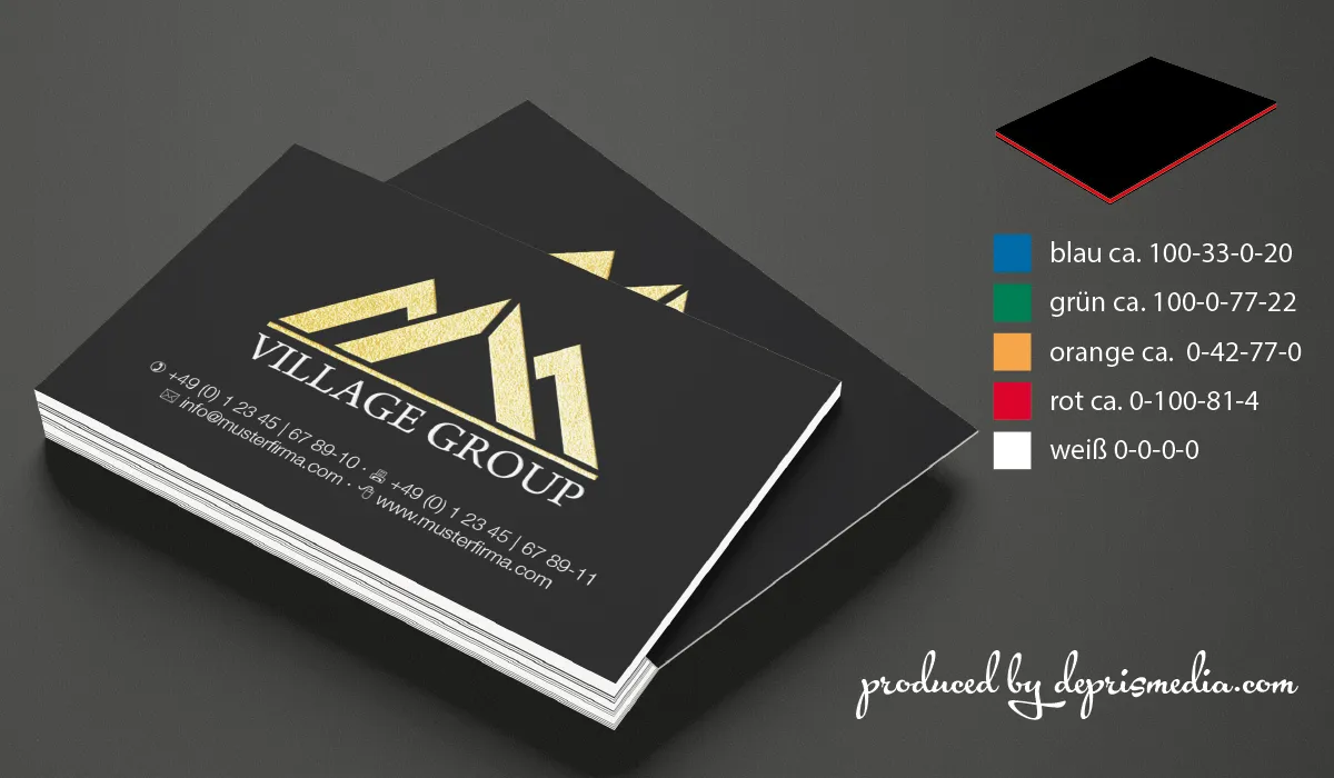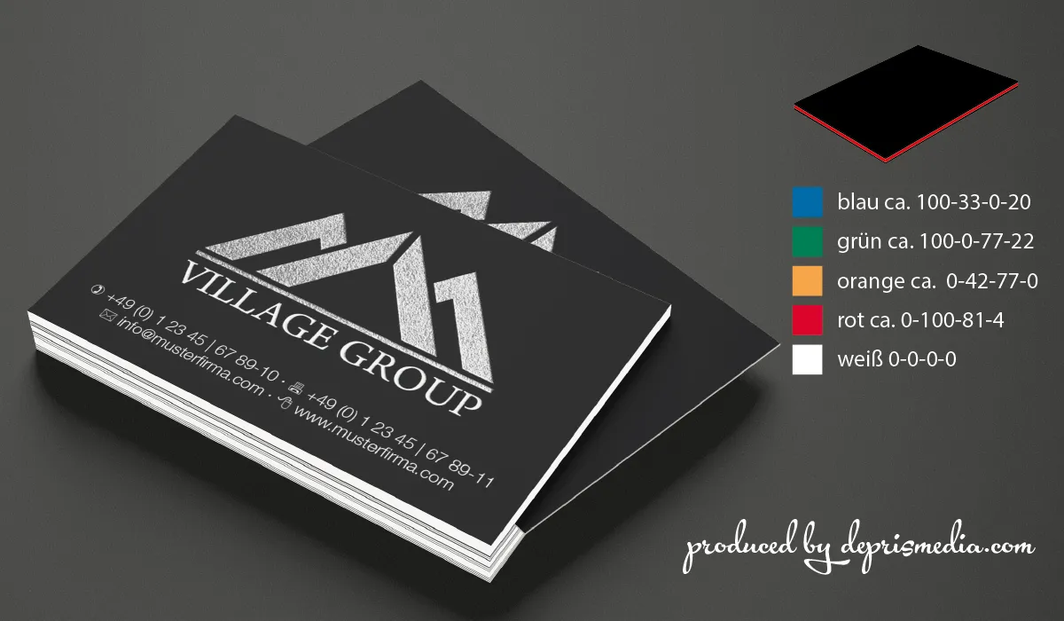 | Art.Nr.: | DM20015 | Lieferzeit: | 2-3 weeks | Gewicht: | 0,400 kg | Format: | 85 x 55 mm · 85 x 51 mm oder 85 x 50 mm | Umfang: | ACHTUNG! Die Folienprägung kann nur unter dem Vorbehalt der Realisierbarkeit angeboten werden. Nicht realisierbar sind kleine Schriften unter 9 pt und keine serifen Schriften sowie detailreiche Logos. Bitte senden Sie uns vorab Ihre Druckdatei zu, wir prüfen diese dann auf die Realisierbarkeit. | Ausstattung: | Auswahl von fünf Farbnähten: weiß, blau, rot, grün oder orange · doppelt so dick für einen extra Eindruck · dezent oder auffällig | Material: | 350 g/m² black · Farbkern: 350 g/m² | Option(en): | Folierung | Druck: | Digitaldruck · Folienprägung | Druckfarben: | Digitaldruck: weiß · Folienprägung: silber · gold · kupfer · rosé-gold · rot · grün · blau | Herkunftsland: | ![]() |