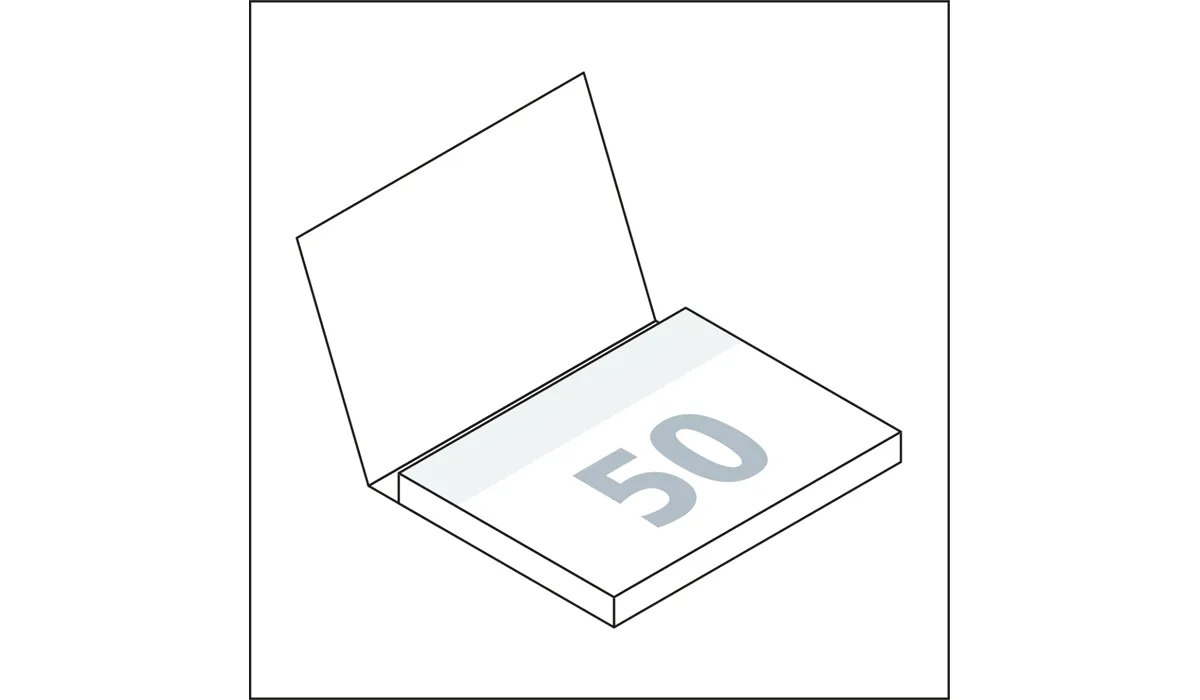 | Art.Nr.: | GE94024U100W | Lieferzeit: | 2-3 Wochen | Gewicht: | 0,032 kg | Format: | 100 x 72 mm Haftnotiz · 100 x 73 mm geschlossen · 100 x 152 mm offen | Einbandmaterial (Umschlag): | In Hochglanz oder matt veredelter Kartoneinband. | Umfang: | 50 Blatt | Material: | Haftnotiz: weißes Haftpapier · Umschlag: Softcover | Verpackungseinheit: | 456 | Werbefläche: | siehe Standbogen | Druck: | 4C-Quality auf dem Umschlag inklusive · Haftnotizen weiß unbedruckt | Druckfarben: | CMYK | Mindestmenge: | 100 | Herkunftsland: | ![]() |