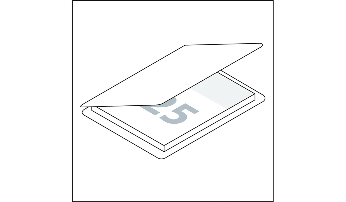 | Art.Nr.: | GE08206FK500PF | Lieferzeit: | 2-3 weeks | Gewicht: | 0,011 kg | Format: | 77 x 54 mm geschlossen · 77 x 112 mm offen | Einbandmaterial (Umschlag): | In Hochglanz oder matt veredelter Kartoneinband. | Verarbeitung: | abgerundete Ecken | Ausstattung: | 5 x 20 pfeilförmige Filmmarker 12 x 44 mm aus transparenter, farbiger Folie | Material: | Umschlag: Softcover oder Naturkarton | Option(en): | Umschlag Softcover matt-individuell oder Naturkarton individuell · individuelle Herstellerkennung auf dem Bodenblatt · Druckmotivwechsel (auf Anfrage) · einzeln Einschweißen | Verpackungseinheit: | 1050 | Werbefläche: | siehe Standbogen | Druck: | 4C-Quality auf Haftnotiz und Umschlag (einseitig) inklusive | Druckfarben: | CMYK | Mindestmenge: | 100 | Herkunftsland: | ![]() |