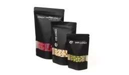 Standbodenbeutel Kraftpapier schwarz, mit Fenster, Top Barrier M