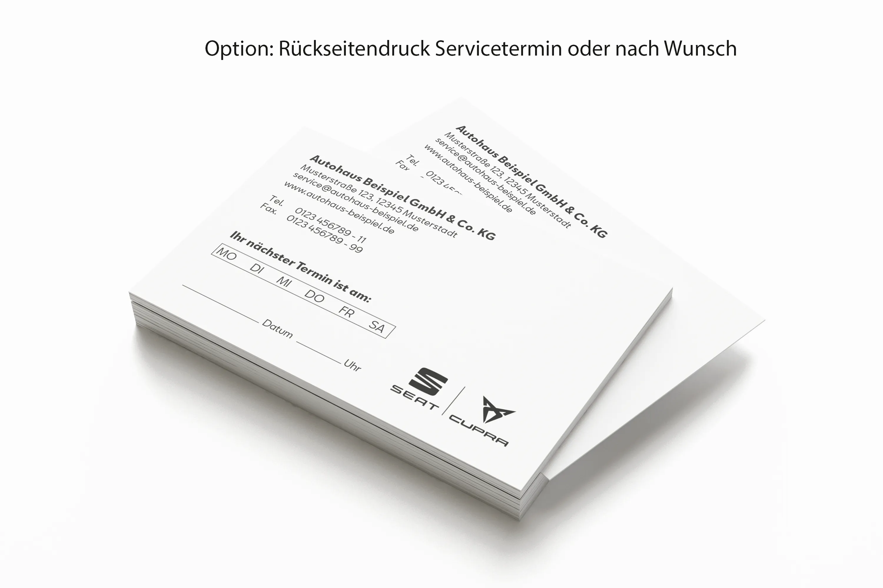 | product-no.: | DM40030 | delivery time: | 3-4 Werktage | weight: | 0,001 kg | format: | 85 x 55 mm | range: | Design according to CI guidelines with or without back. | equipment: | We create business cards are always looking for the current corporate identity directives or design guidelines of the car brand. Alternatively, we can also create business cards according to your wishes. | material: | 250 g/m² Koehler Icewhite IQ (smooth) | print: | digital printing | printing ink: | 1/0-color (black) | · delivery of your print data in response to the order confirmation email · layout and design work according to your specifications · correction deductions before the start of the print (except in the basic corner) | manufacturer: | deprismedia.com [Susann & Lars Ströse GbR] BahnhofstraĂŸe 32 DE-07422 Bad Blankenburg info@deprismedia.com www.deprismedia.com Tel. +49 3 67 41-1 88 36-0 |