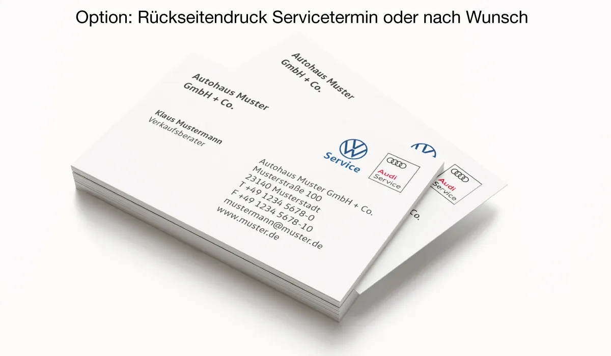 | product-no.: | DM40911 | delivery time: | 3-4 days | weight: | 0,100 kg | format: | 85 x 55 mm | equipment: | We create business cards are always looking for the current corporate identity directives or design guidelines of the Volkswagen AG according to ISO norm or 100% audit. Alternatively, we can also create business cards according to your wishes. | material: | 250 g/m² Koehler Icewhite IQ (smooth) | print: | digital printing | printing ink: | cmyk (4/0 colored on one side or 4/4 colored on both sides) | · delivery of your print data in response to the order confirmation email · layout and design work according to your specifications · correction deductions before the start of the print (except in the basic corner) | manufacturer: | deprismedia.com [Susann & Lars Ströse GbR] BahnhofstraĂŸe 32 DE-07422 Bad Blankenburg info@deprismedia.com www.deprismedia.com Tel. +49 3 67 41-1 88 36-0 |