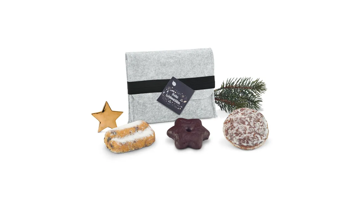 Gift box/Present set: Felt bag with biscuits