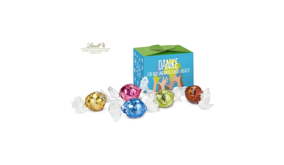 Gift product / gift article: Lindt sweet thank you, box of chocolates with globe, 5 Lindor balls