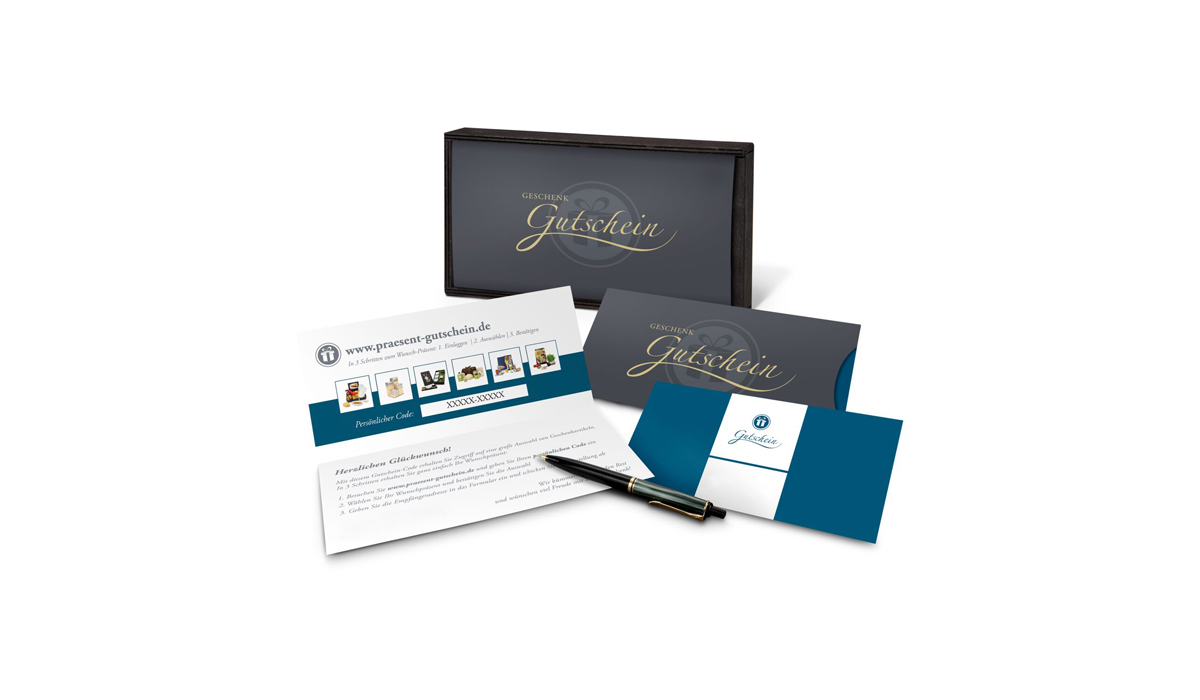 Gift voucher blue in wooden box, 20 € for gifts, lifestyle and wellness articles