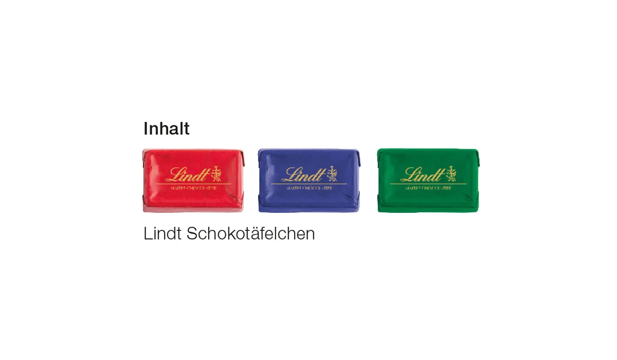 order samples: | possible | contents: | 24 pieces of Lindt & SprĂ¼ngli chocolate bars made from the finest milk chocolate, in three festive colors, mixed colors, 124 g | customs tariff number: | 4251336510435 | manufacturer: | deprismedia.com [Susann & Lars Ströse GbR] BahnhofstraĂŸe 32 DE-07422 Bad Blankenburg info@deprismedia.com www.deprismedia.com Tel. +49 3 67 41-1 88 36-0 |