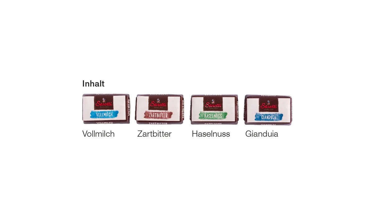 order samples: | possible | contents: | 24 pieces of Sarotti chocolate bars in four different varieties, mixed in colors, 100 g | customs tariff number: | 4251336510374 | manufacturer: | deprismedia.com [Susann & Lars Ströse GbR] BahnhofstraĂŸe 32 DE-07422 Bad Blankenburg info@deprismedia.com www.deprismedia.com Tel. +49 3 67 41-1 88 36-0 |