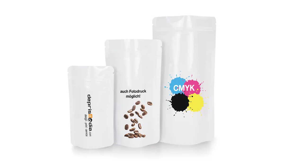 - Two additional coatings make the The stand-up pouch stable, odorless and resealable