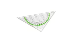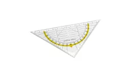 ruler with company logo: triangular ruler with a printed 14 cm scale and coloured measurment angle.