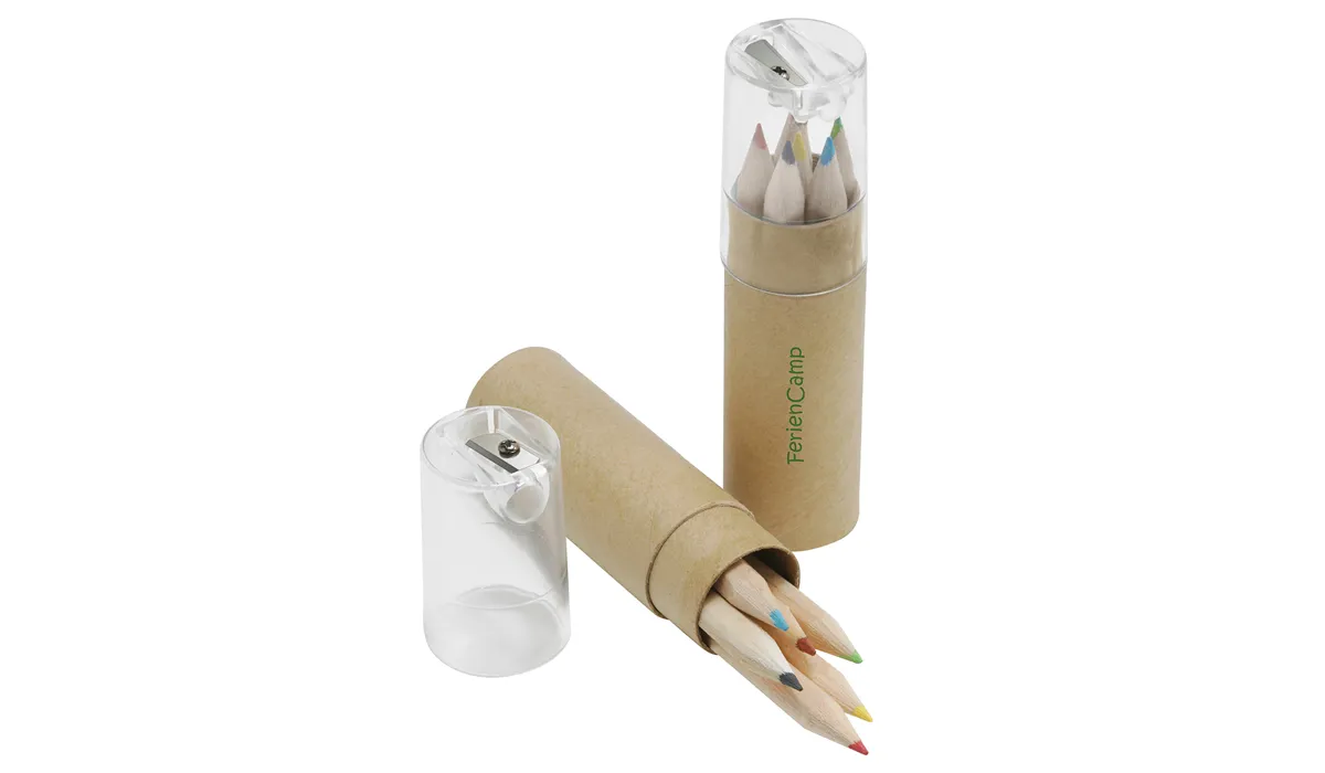 | product-no.: | HE7135 | delivery time: | 3-4 Wochen | weight: | 0,027 kg | size: | Ă˜ 27 x 107 mm | colour: | beige/transparent | equipment: | 6 small coloured pencils, sharpener in the transparend lid, carton box | material: | Paper (PAP), polyamide (PA), polystyrene (PS) | packaging units: | 1/50/400 | advertising area: | 8 x 30 mm | print: | pad printing | printing ink: | HKS or PMS | min. quantity: | 50 | country of origin: | ![]() |