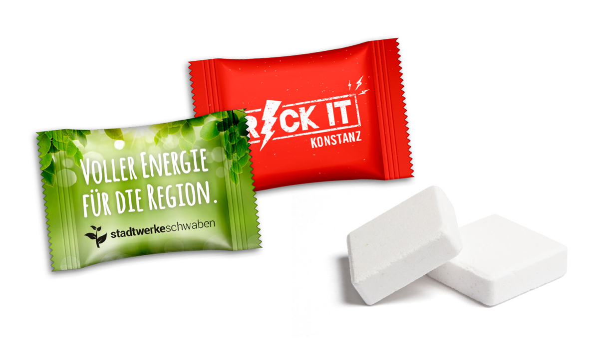 product-no.: | MAG-02-E202 | delivery time: | 2-3 weeks | weight: | 0,600 kg | taste: | lemon flavour | packaging dimension: | approx. 35 x 54 mm | variant(s): | transparent foil · white foil | equipment: | Commodity is weighed, not one counted. | material: | foil | option(s): | Other quantities on request! | packaging: | 500/4000 | durability: | 18 months when properly stored | advertising area: | see templates | print: | flexo printing | printing ink: | HKS · PMS · CMYK | min. quantity: | 50 | certificate: | ![]() |