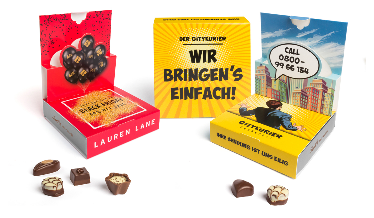 contents: | 9 mini pralinés approx. 44 g | customs tariff number: | 18069011 | · delivery of your print data in response to the order confirmation email · layout and design work according to your specifications · correction deductions before the start of the print (except in the basic corner) | manufacturer: | deprismedia.com [Susann & Lars Ströse GbR] Bahnhofstraße 32 DE-07422 Bad Blankenburg info@deprismedia.com www.deprismedia.com Tel. +49 3 67 41-1 88 36-0 |