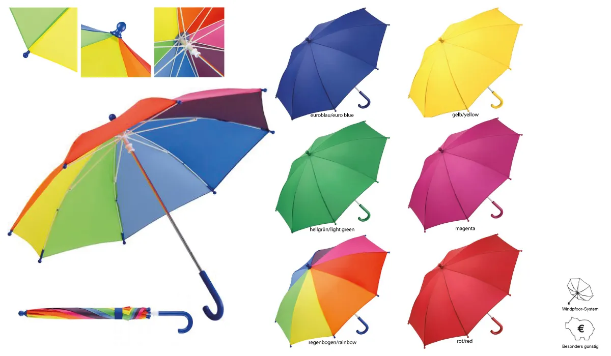 | product-no.: | 6905 | delivery time: | 2-3 weeks | weight: | 0,185 kg | size: | Ø 730 mm · closed length: 590 mm | colours: | euro blue · yellow · light green · magenta · rainbow · red | equipment: | number of wedge: 8 | material: | Cover: 100% polyester · Handle: plastic · Stick: steel | packaging units: | 48 | print: | on umbrella segment (same motif): Sublimation · Flex foil · Flock foil · Transfer printing · Screen printing (max. 2 colors) · on closing strap (same motif): Screen printing (1 color) | printing ink: | RAL · CMYK | min. quantity: | 48 | brand: | ![]() |