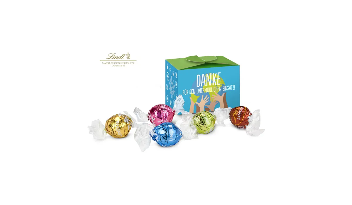 Geschenkartikel: Lindt süßes Danke, Pralinenschachtel mit Globus