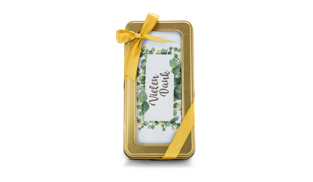 Geschenkartikel/Präsentartikel: Golddose Vielen Dank