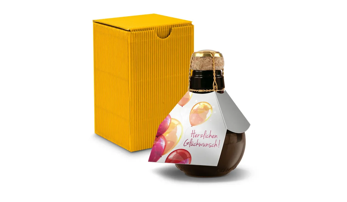 Origineller Sekt Herzlichen Glückwunsch - Karton Gelb, 125 ml