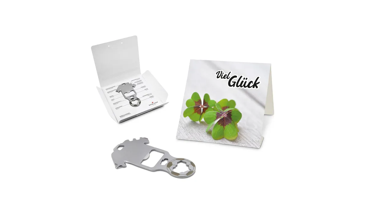 | Art.Nr.: | RP2K2109h | Lieferzeit: | 2-3 Wochen | Gewicht: | 0,030 kg | Abmaße: | 7.2 x 4.8 x 0.2 cm | Farbe: | silber | Material: | Edelstahl | Werbefläche: | siehe Datenblatt | Druck: | Lasergravur pro Key Tool · Lasergravur Vorder- und Rückseite · Lasergravur Einzelnamen bis 10cm² · 4c Einleger (Stückkosten inklusive) · Verpackung pro Key Tool (4/0) · Lasergravur pro Key Tool KeyRefinder Code | Druckfarben: | Druck: CMYK · Tampondruck: ähnlich HKS bzw. Pantone · Siebdruck: RAL · Lasergravur und Prägung: materialabhängig | Herkunftsland: | ![]() |