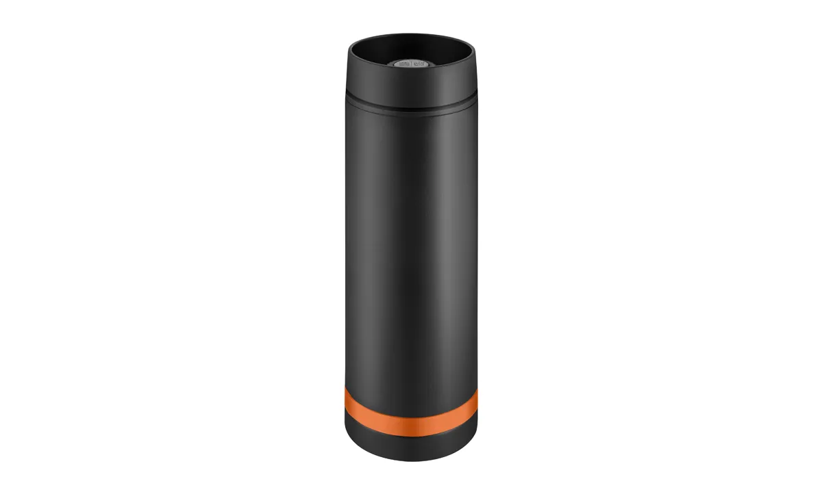 Thermobecher Crema 360° schwarz/Ring orange