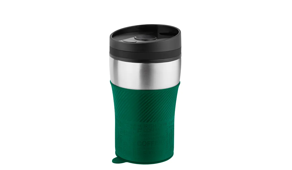 mit Firmenlogo: Unser bewährter Topseller CremaOfficina (doppelwandig, Vakuum, kupferbedampft, auslaufsicher, spülmaschinengeeignet) jetzt mit magischer Silikonmanschette mit Saugnapf, d.h. extrem stabiler Stand in allen Lebenslagen. RCS recycelter Edelstahl - Recycling Anteil 49%, 250ml (0,25l), Craft Paper Box. (ab 1.000 St. als Sonderausführung mit Ihrem Logo fragen Sie uns)