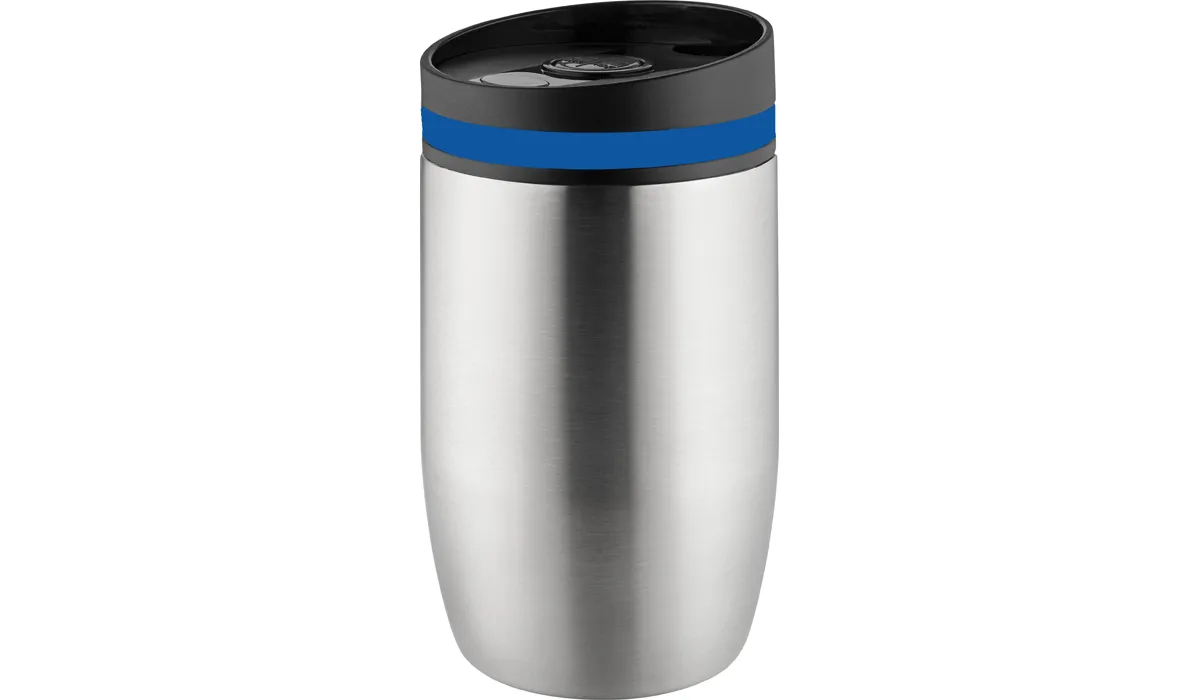 Thermobecher CremaOfficinaBudget silber/Ring blau