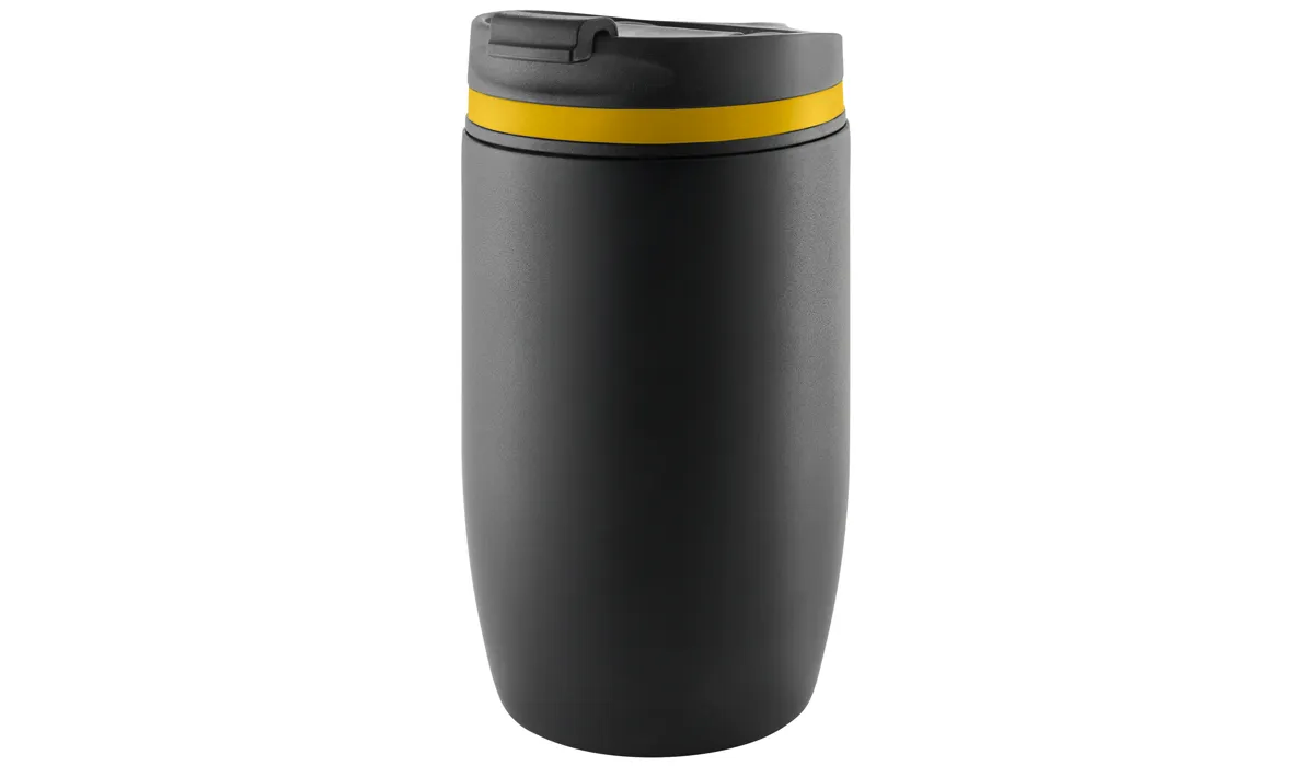 Thermobecher CremaOfficinaNero schwarz/Ring gelb