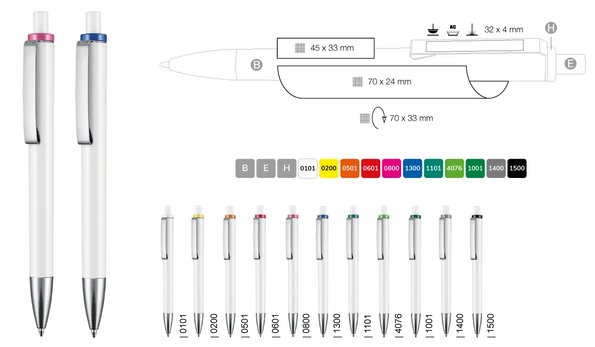 | Art.Nr.: | RI07600 | Lieferzeit: | 2-3 Wochen | Gewicht: | 0,017 kg | Farben: | mix und match Baukastensystem | Ausstattung: | Qualitätsmine Ultra Soft in blau oder schwarz | Material: | Kunststoff | Verpackungseinheit: | 500 | Werbefläche: | siehe Button Penbuilder | Druck: | Siebdruck · Tampondruck · Ätzung | Druckfarben: | HKS · Pantone oder RAL | Mindestmenge: | 500 | Marke: | ![]() |