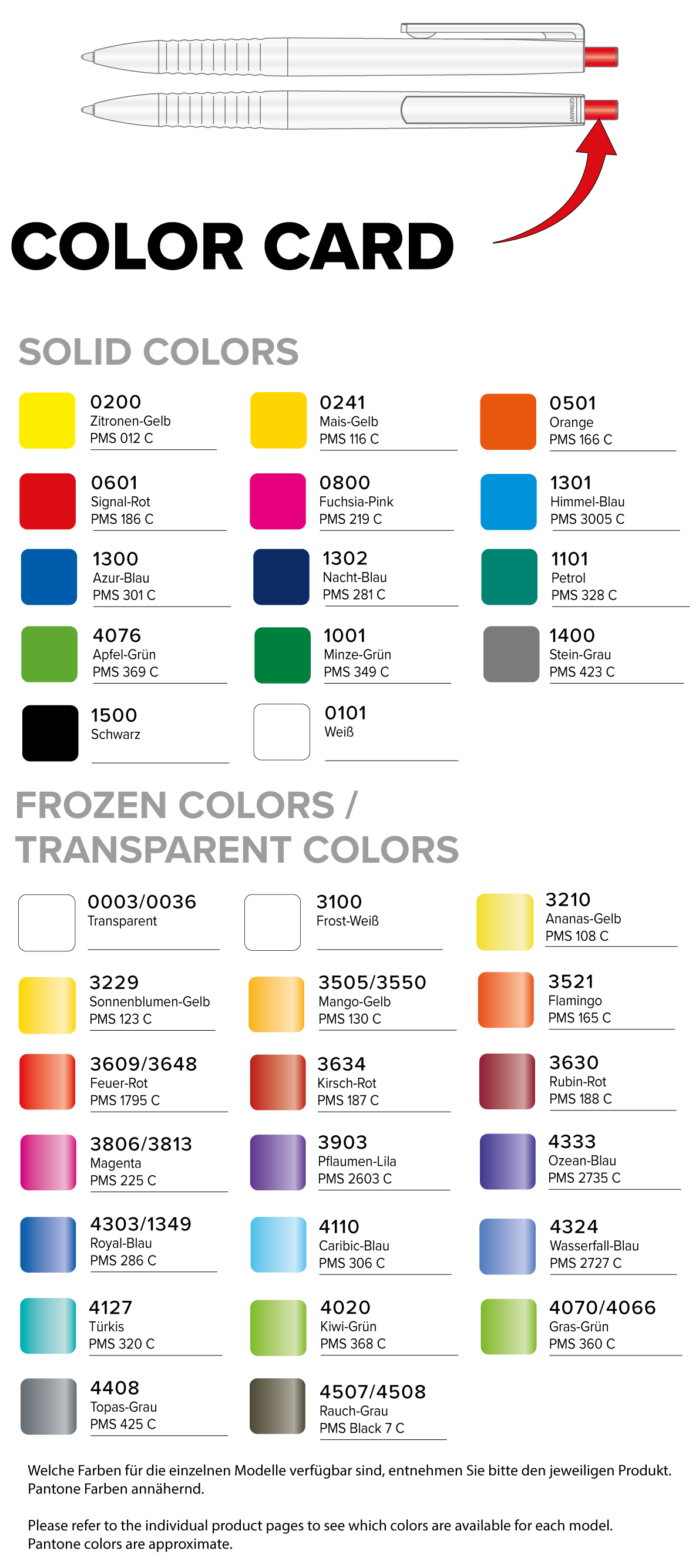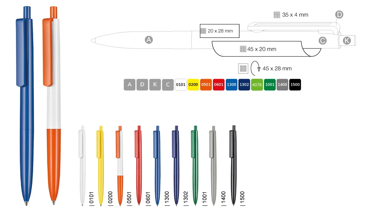 | Art.Nr.: | RI19300 | Lieferzeit: | 2-3 Wochen | Gewicht: | 0,007 kg | Farben: | mix und match Baukastensystem | Ausstattung: | Qualitätsmine JOGGER in blau oder schwarz | Material: | Kunststoff | Verpackungseinheit: | 1000 | Werbefläche: | siehe Button Penbuilder | Druck: | Siebdruck | Druckfarben: | HKS · Pantone oder RAL | Mindestmenge: | 500 | Marke: | ![]() |