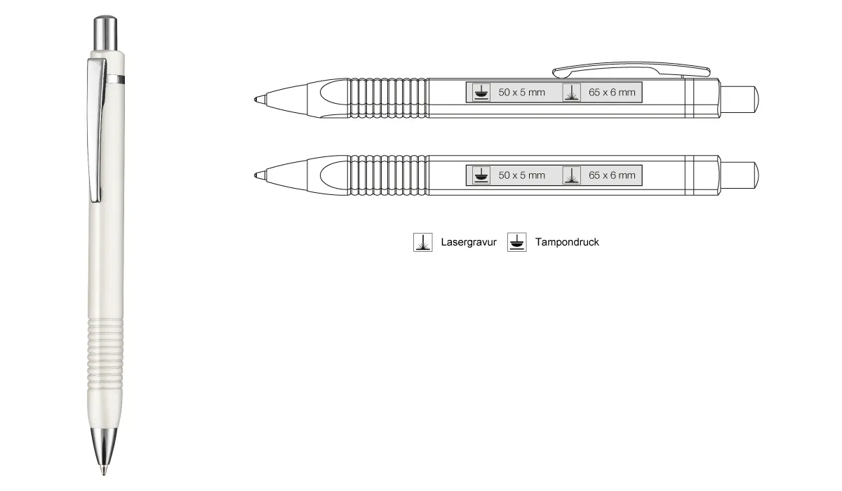 | Art.Nr.: | RI68920 | Lieferzeit: | 2-3 Wochen | Gewicht: | 0,021 kg | Farbe: | metallic weiß | Ausstattung: | Budget Metallmine blauschreibend | Material: | Metall | Verpackungseinheit: | 100 | Werbefläche: | siehe Button Penbuilder | Druck: | Lasergravur · Tampondruck | Druckfarben: | HKS · Pantone oder RAL | Mindestmenge: | 100 | Marke: | ![]() |