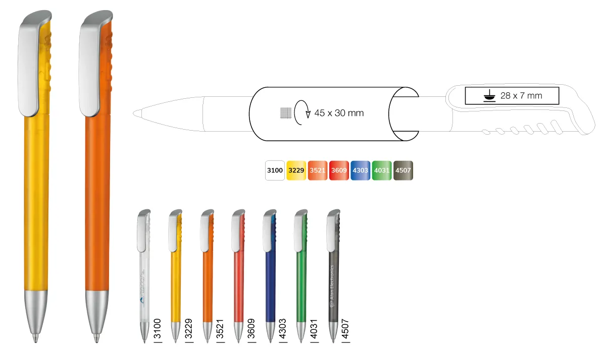 | Art.Nr.: | RI10083 | Lieferzeit: | 2-3 Wochen | Gewicht: | 0,010 kg | Farben: | 3101 frostweiß · 3229 sonnenblumengelb PMS 123 C) · 3521 flamingo (PMS 165 C) · 3609 feuerrot (PMS 1795 C) · 4303 royalblau (PMS 386 C) · 4031 limettengrün (PMS 354 C) · 4408 topasgrau (PMS 425 C) | Ausstattung: | Budget Großraummine blauschreibend | Material: | Kunststoff | Verpackungseinheit: | 1000 | Werbefläche: | siehe Button Penbuilder | Druck: | Siebdruck · Tampondruck | Druckfarben: | HKS · Pantone oder RAL | Mindestmenge: | 500 | Marke: | ![]() |