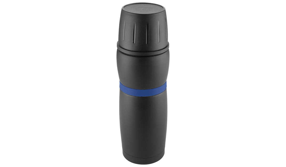 Thermoflasche CremaTravel schwarz/Ring blau