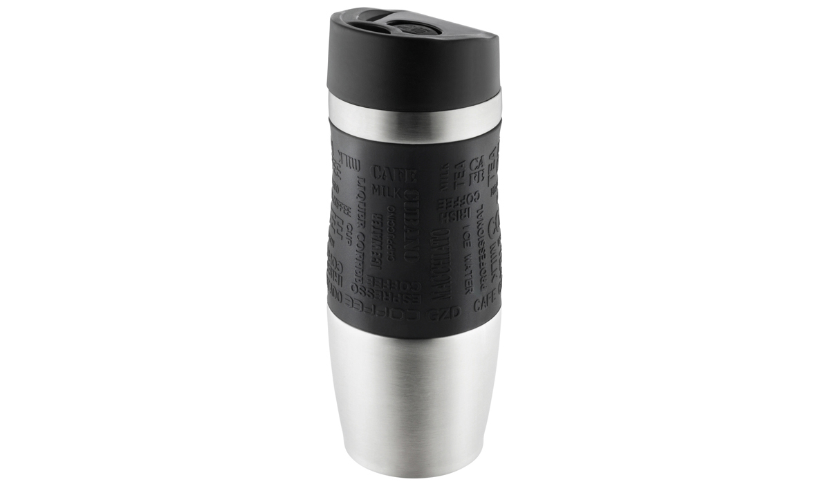 Thermobecher CremaEleganza silber, Manschette schwarz