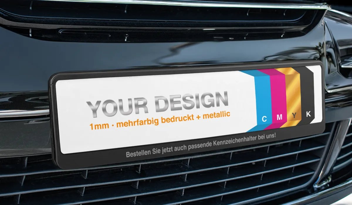 | Art.Nr.: | DM30032 | Lieferzeit: | 2-3 weeks | Gewicht: | 0,058 kg | Abmaße: | EU-Standard: 520 x 110 mm · US-Caravan: 305 x 155 mm · Österreich: 520 x 120 mm · Schweiz (vorne): 300 x 80 mm · Schweiz (hinten): 500 x 110 mm | Ausstattung: | gerundete Ecken r = 9 mm · Schutzlaminat | Material: | 1 mm Polystyrol weiß (Hartkunststoff) · wetterfest · abwaschbar | Option(en): | UV-Laminierung in matt oder glänzend (Schutz vor zerkratzen und Verlängerung der UV-Beständigkeit des Aufdruckes auf bis zu 3 Jahre) | Werbefläche: | vollflächig (einseitig) | Druck: | hochauflösender EcoSolvent-Druck | Druckfarben: | CMYK + metallic in gold oder silber | Mindestmenge: | 100 | Herkunftsland: | ![]() |